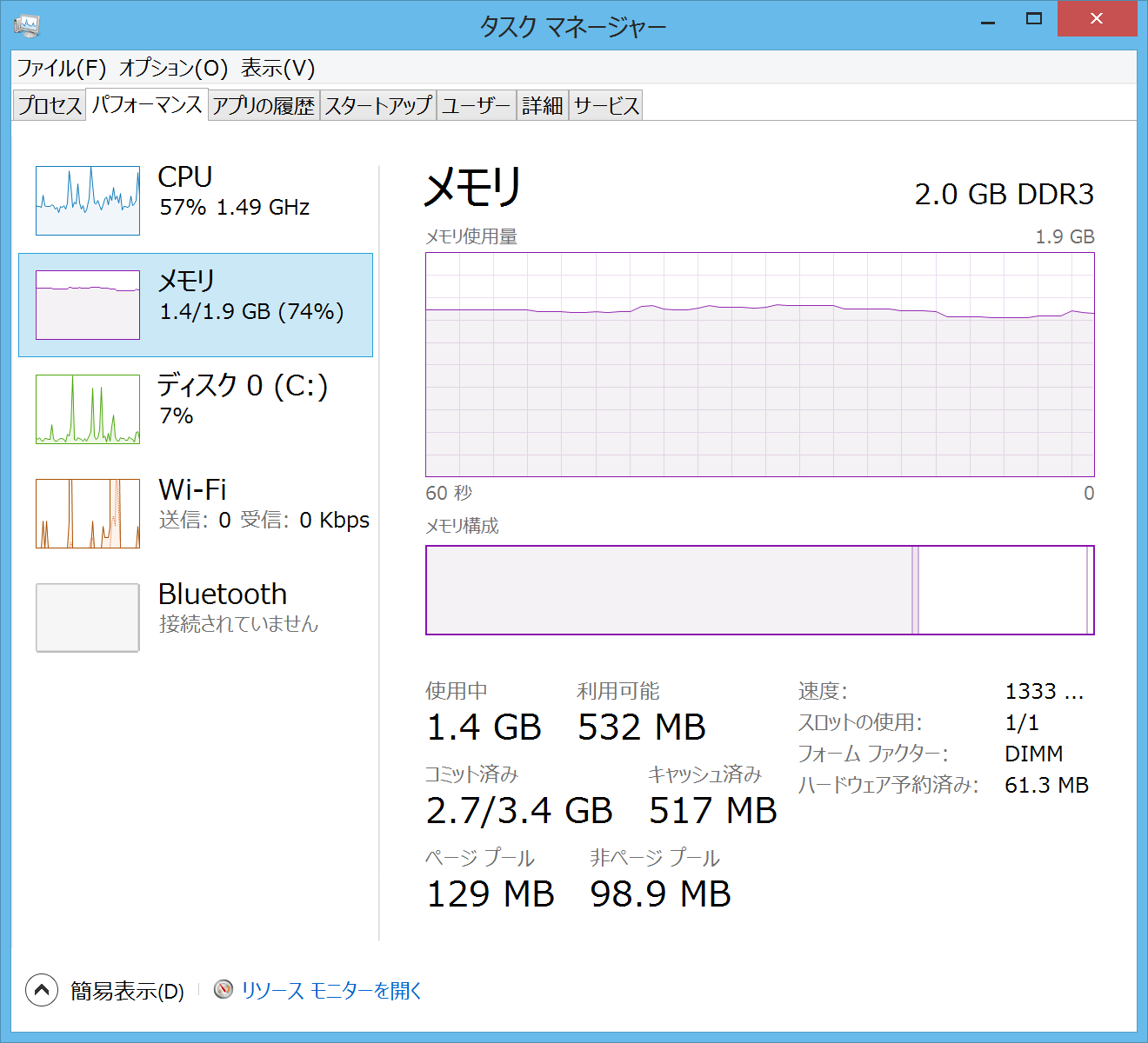 常時1.4GBを使い500MBほど余裕があります。
