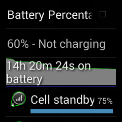スタンバイで75%を占めてるけど意外とGoogle Playでアプリ入れて遊んだりしてたんだけど60%残りましたね