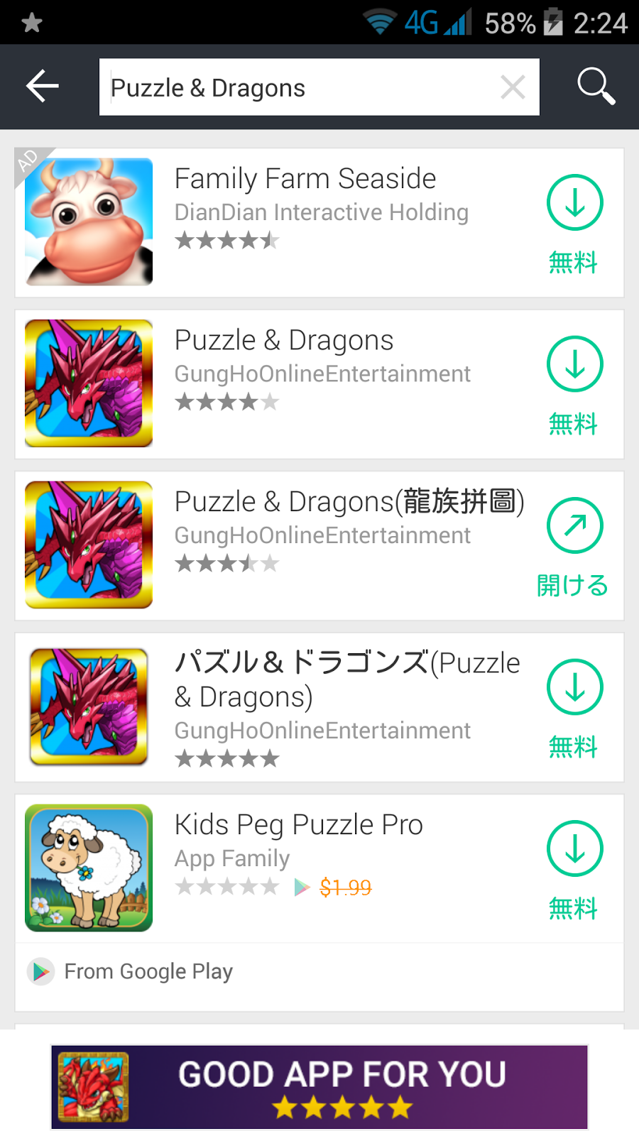 次に、1mobile marketでPuzzle&Dragonsと検索します