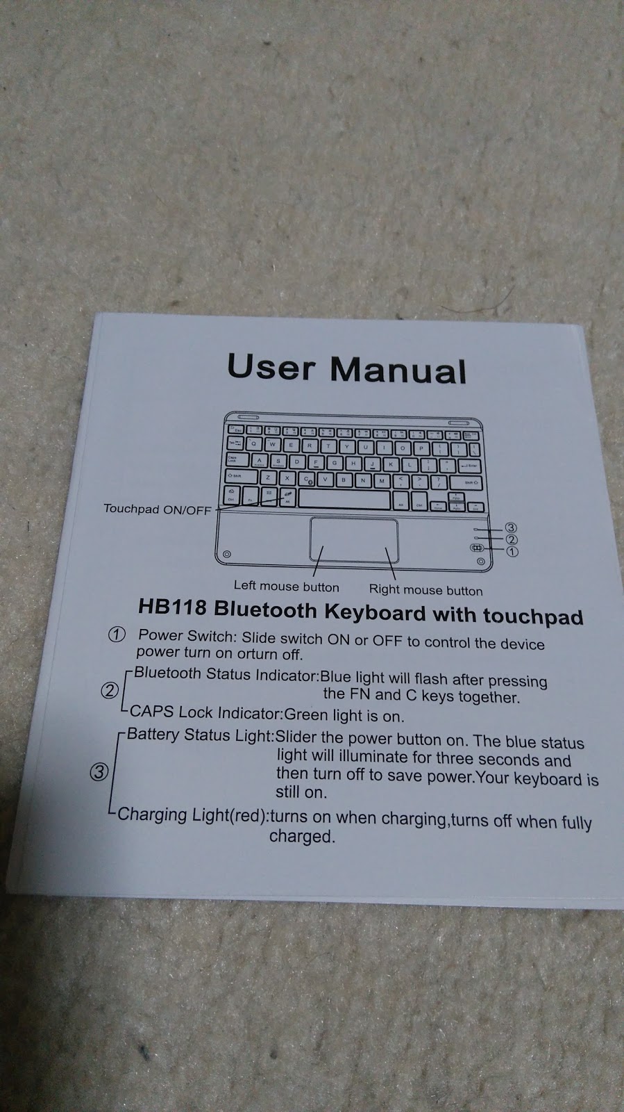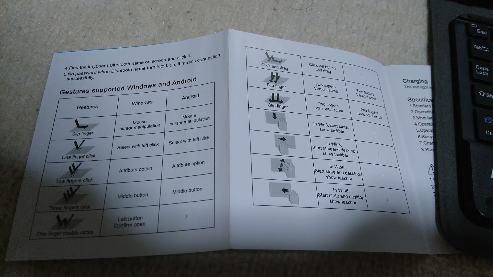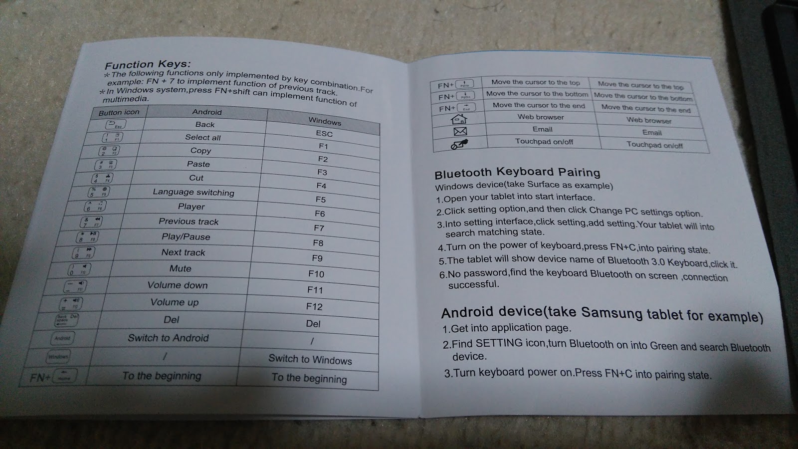 ペアリングの仕方とキーボードの説明が書いてあります