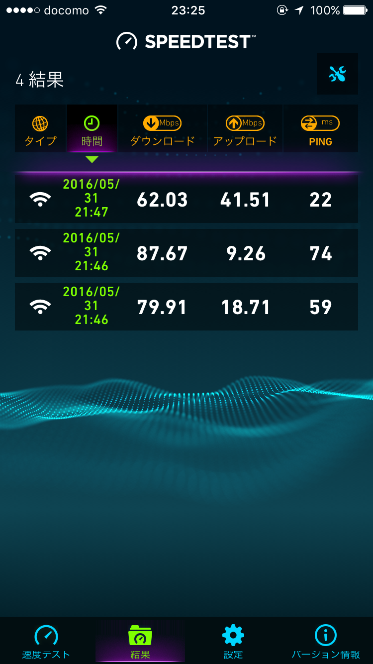 また、1回目は近くで、2回目以降は離れた部屋で測ったのですが速度が殆ど変わらず電波の強さもなかなかです。