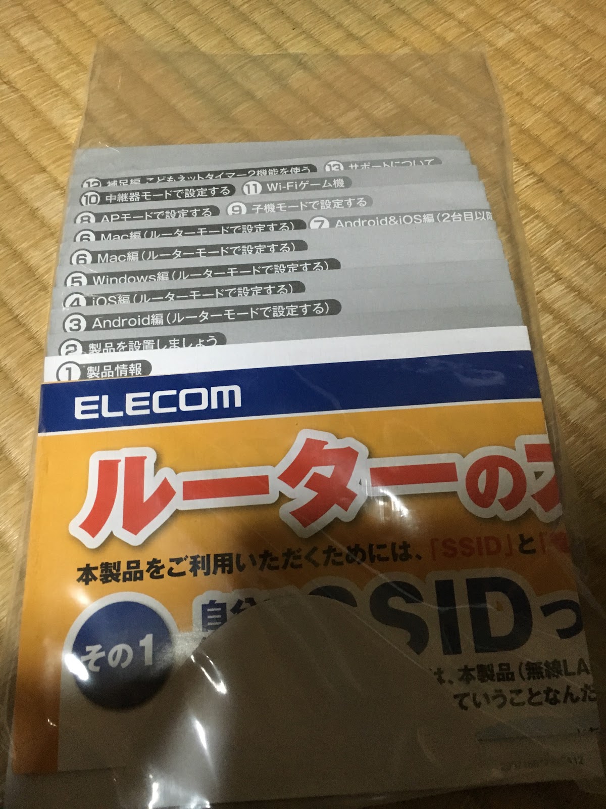 これにあと説明書と設定用DVD(パソコンからやる人向け)がついていました。