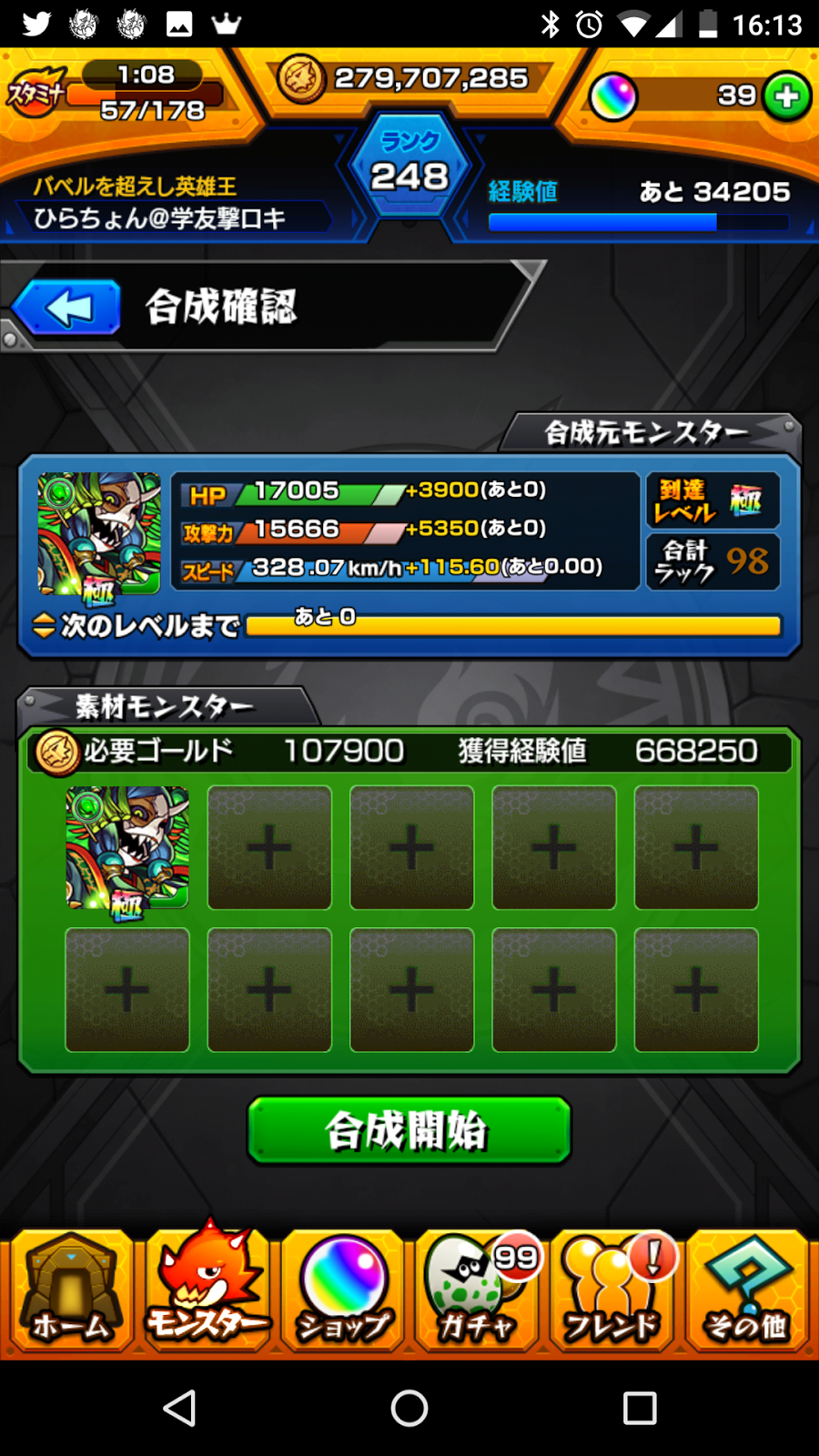 全て自キャラで最後は回りましたが、1体でもフレンドが少なかったら13周は厳しかったかもしれません。