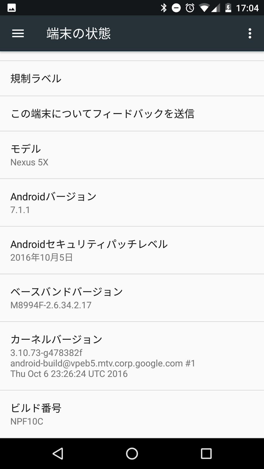 Nexus5XにAndroid7.1.1のBeta版が来ました Posted on 2016年10月20日 by hirachon — Leave a reply 英語だらけでよくわかんないけどベータプログラムが来ました。 ベータプログラムは最新のNexus端末を所有している人が、あらかじめベータプログラムを登録しておくことで知らないうちに降ってきます。 https://www.google.com/android/beta 新要素を見ていきたいと思います。 起動したらなんか出てきた 起動したらまだ更新が終わってなかった 完全に更新が終わる前に起動しちゃって大丈夫なんですかね…? あとMi Fitを実行しているって出てきてるけど7.0じゃ通知に出てこなかったしバックグラウンドで実行されているアプリが通知に出てくるのかな? 設定にサポートという項目が出てきた スマホの使い方を案内してくれるそうです。 めっちゃ初歩的なことで草 最近初心者向けのアップデート多いっすね… まあAndroidの使用者を増やそうとすることはいいことだで。 動作ってなんだよ 今更な機能ばっかで反応に困る Android7.1.1 最新OSが乗っているのは気持ちがいい(自己満足) Android7.0にしてからは電池持ちが酷かったので改善されているといいんですけどね… 3Dtouchに対応しました(大嘘) アプリを長押しするとなんか出てくる まるで3Dtouchみたいだぁ… プリインストールアプリが一斉に更新されていたのはこれに対応するためだったんですね Googleのアプリはだいたい対応していました。そのうちLINEとかTwitterも対応してきてショートカットとして機能するのではないでしょうか? 見た感じ更新内容はこんな感じです。 後は細かい不具合が治っていれば良いんだけどな~