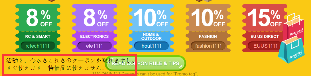 ちなみにこういう情報はBanggoodのメールマガジンでも届くし、今回は中の人に詳細を問い合わせたら画像で説明してくれたのでそれと合わせて紹介していきます。