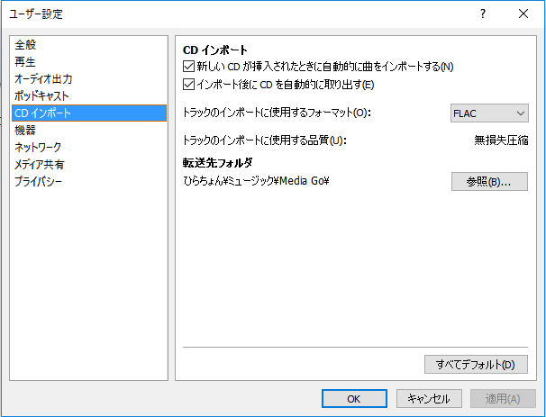 話がそれましたがwavだと不便なのでFLAC形式で取り込むといいゾ~って教えてもらったのでSONY製でFLAC形式で取り込めるMediaGOをインストールしました。