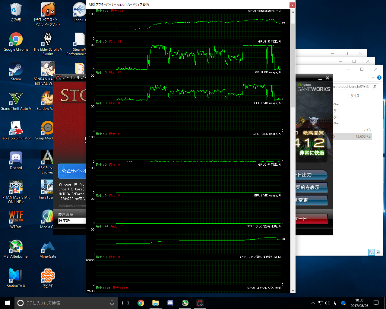 VR可能 CPU使用率 50%程度 GPU使用率 100% GPU温度 最高81 |
