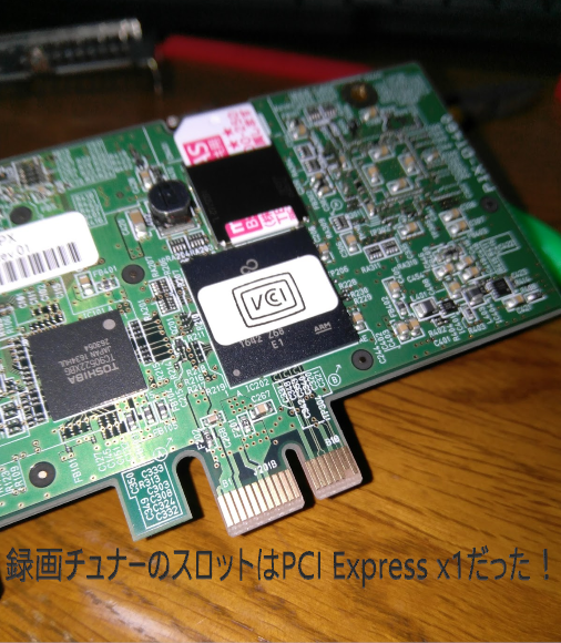 紙一重じゃないです接触事故が起きてます。それでもなんとか入りましたが入れるのにも一苦労です。なぜここまで無理してまでヒートシンクに近い方のスロットに入れているかというと、もう片側のx16スロットに録画チューナーを載せたいからです。2スロット占有で隣のスロットが潰れてしまうためこっちにグラボを載せないとx16スロットが2つ潰れてしまうのです。しかしなんとか入ったので録画チューナー載せたいと思います。