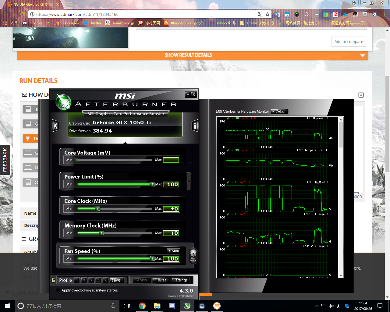 Fan Speedを常時100%にしたらGPU温度が75℃くらいで収まった |